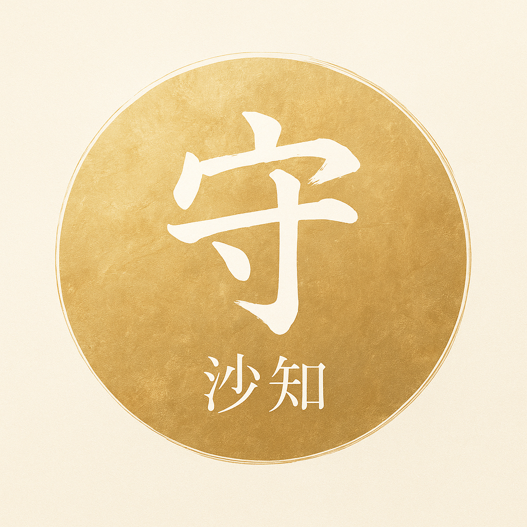 淡い光の円の中に書かれた「守」と「沙知」。